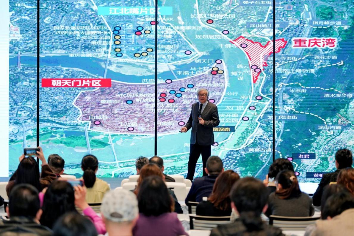 在谈及这块土地的独特性时,李晓江强调,重庆湾是两江四岸核心区中唯一能整体重塑的城市留白,拥有完整、连续、无遮挡的江岸界面,构成历史与当代的珍贵对话现场。汪孝安则把重庆湾看做“世界第一湾“,“因为它不只是一个江湾,还是两江交汇的湾,更是有山有水的湾。”